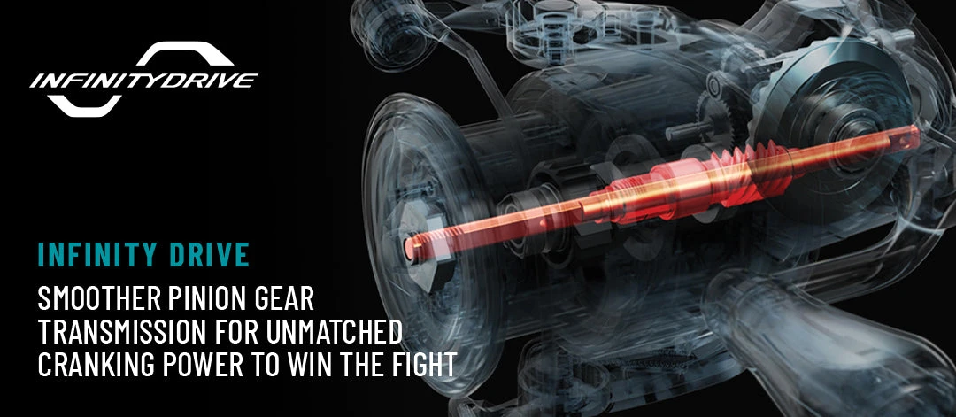 The Infinity Drive structure is a more advanced version of the conventional X-SHIP structure that created exceptionally light winding. The main shaft, which had previously been supported by the pinion gear, is now supported by a new and unique low-friction bushing that significantly decreases frictional resistance. In addition, the main shaft has undergone a proprietary surface treatment and special processing to drastically reduce rotational torque, constructing a reel that can actively wind even under heavy loads.